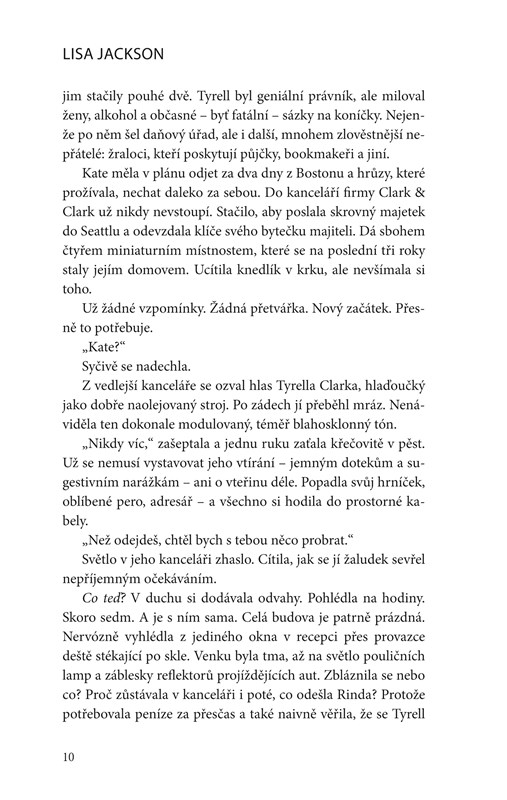 Kate Summersová po tragickém úmrtí manžela a dcery dostane šanci mít další dítě. Krásného novorozeného chlapečka. Stačí, aby souhlasila se dvěma podmínkami: že se okamžitě odstěhuje z Bostonu a že o netradiční adopci nikdy nikomu neřekne jediné slovo. O patnáct let později může Kate říct, že pro sebe i svého syna Jona vybudovala hezký život. A přece se nemůže zbavit rostoucí obavy, že jednoho dne o Jona přijde. Podezření sílí až k jistotě: ano, někdo ji sleduje, sleduje i jejího syna, a je ochoten udělat všechno proto, aby jí ho vzal. Vyděšená Kate se obrátí s prosbou o pomoc na jediného člověka, kterému dokáže důvěřovat, i když ví, že i on pro ni může být v určitém ohledu nebezpečný... Dlouho se mylně domnívala, že na svou minulost vyzrála. Teď se všechny dávné lži a zrady probouzejí, a kdosi je možná kvůli nim schopen i vraždit.