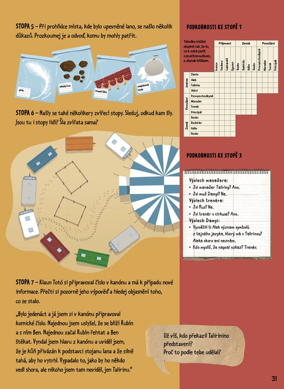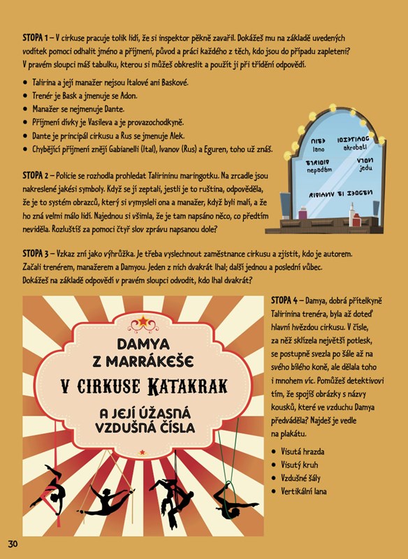 Tajemná porucha parníku, vyměněný obraz, pokažené cirkusové číslo nebo krádež v laboratoři… to jsou jen některé z mnoha zapeklitých záhad, které čekají na odvážného detektiva. Přečti si svědectví, obhlédni místa činu a porovnej důkazy. Po splnění sedmdesáti zábavných úkolů jistě zjistíš, jak to všechno bylo. A kdyby ne, nic se neděje: na konci knihy najdeš řešení.