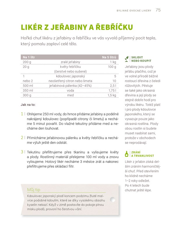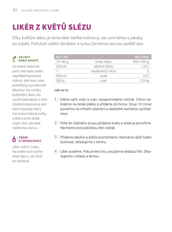V knize najdete více než 50 receptů na domácí výrobu likérů z bylin a květů. Pochutnejte si například na likéru z borůvkových květů, likéru z květů pampelišky nebo z jitrocele. Nechte se inspirovat jemnými příchutěmi i netradičními kombinacemi.
