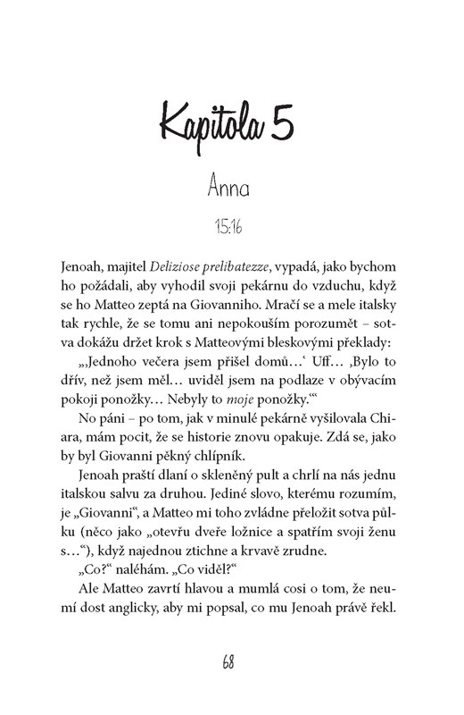 Matteo právě naprosto zvoral nejdůležitější věc ve svém životě – fotbalový zápas, který mu měl zajistit zářnou budoucnost. A tak se jen bezcílně toulá městem. Když uvidí cizinku, která se v pekárně bez znalosti jediného italského slova snaží nakoupit velice specifický druh pečiva, nabídne jí pomoc.