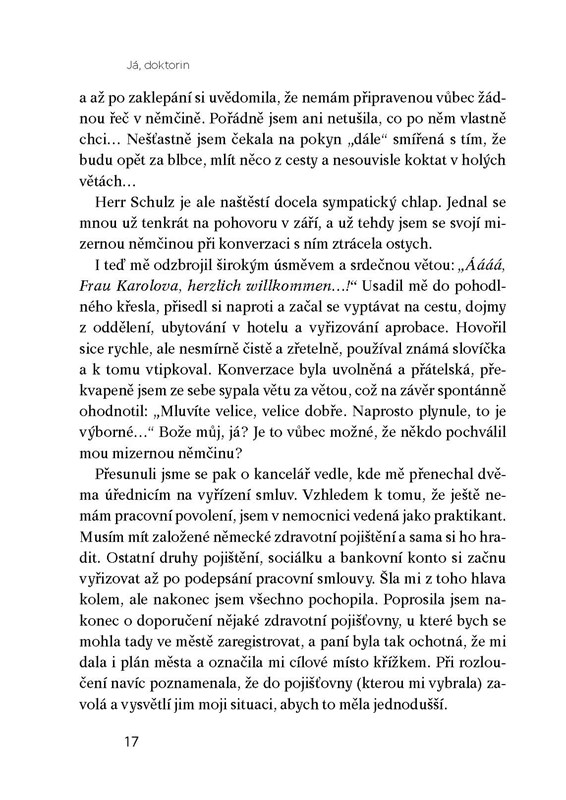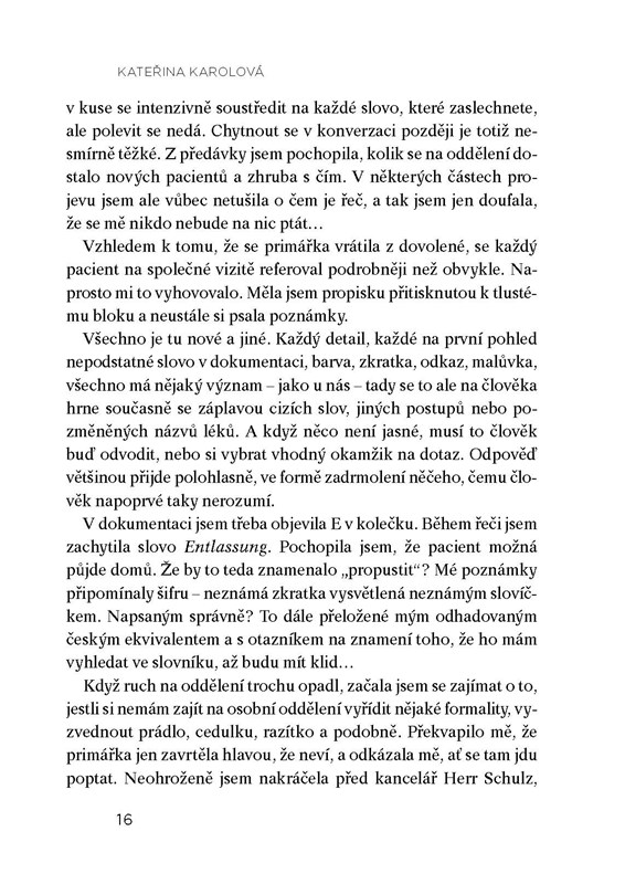 Kateřina Karolová se narodila ve Zlíně, v Praze vystudovala medicínu a po třech letech praxe dětské lékařky v české nemocnici kývla na nabídku pracovního místa v Německu. Tam začala psát blog – předlohu pro tuto knihu.