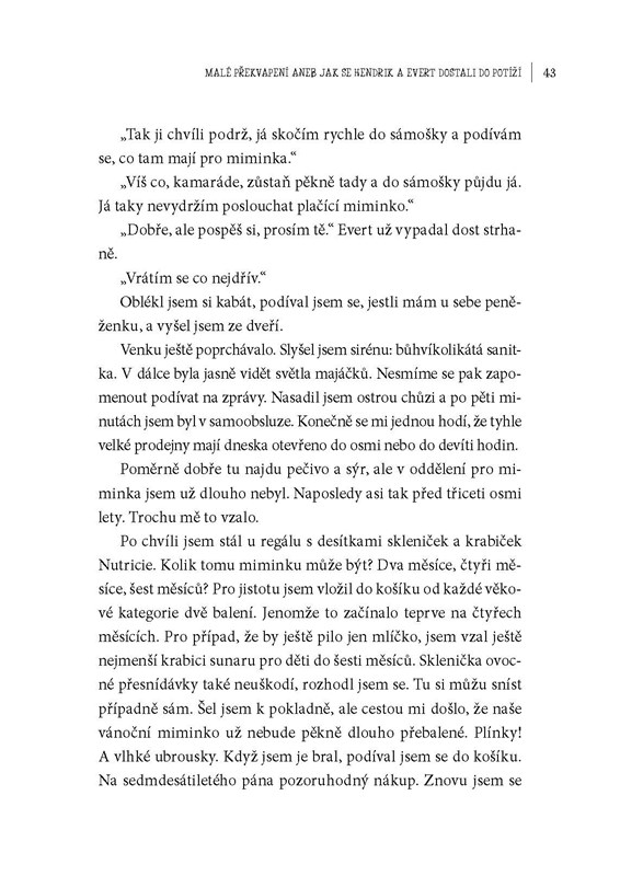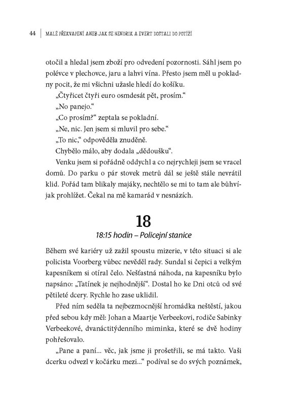 Hendrik a Evert jsou dva trochu roztržití amsterdamští staříci, kteří se ovšem ještě ani zdaleka nechystají na odpočinek. Do života svého okolí zasahují peticemi nebo aspoň ostrými dopisy představitelům nejrůznějších organizací, scházejí se nad šachy a šnapsem a žijí si celkem spokojeně, tedy až do té doby, než Evert udělá fór „za všechny prachy“. Podlehne okamžitému nápadu a cestou za Hendrikem s sebou přibere nehlídaný kočárek s miminkem. Když oběma pánům dojde, co to vlastně provedli, už je dávno pozdě. Celé město je vzhůru nohama a policisté v akci. Podaří se dvěma hodně zastydlým puberťákům svůj čin napravit? Nenápadně a jednoduše to zřejmě nepůjde, navíc o takové miminko je také třeba náležitě pečovat – ovšem důchodce s taškou plnou dětské výbavičky z drogerie je na ulici jako pěst na oko... Hendrik a Evert se k výzvě ale postaví čelem, a o zábavu tak bude rozhodně postaráno.