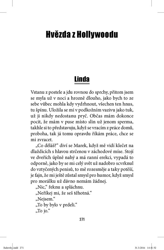 Nechte se strhnout upřímnou zpovědí hlavních hrdinek, kde nechybí ironie, humor, bolest, napětí, nenávist ani láska. Kde se emotivní příběhy vzájemně prolínají, jeden vede ke druhému, k celé řadě zajímavých rozuzlení a potom nerušeně pokračují dál, někdy šťastně, někdy ne, takový už je život.