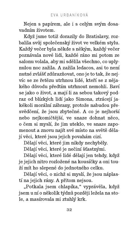 Hrdinkou románu je svobodná třicátnice, vyrovnaná a spokojená, s dobrou kariérou a okruhem přátel a známých, které má ráda. Potkává vdovce Marka s malým děvčátkem. Láska na sebe nedá dlouho čekat, začnou spolu žít a všechno vypadá přímo ideálně. Do Markova života ale zasáhne ekonomická krize, jeho stavební firma zkrachuje a on se dostane do velkých dluhů. Začne pít a své zoufalství si vybíjí na svých nejbližších – na dcerce a partnerce. Ta mu to chvíli toleruje, ale potom se rozhodne, že nechce žít s člověkem, který pije a nedokáže se vyrovnat s těžkou životní situací. Než svého partnera a jeho dceru opustí musí najít odpověď na zásadní otázku – zda není příliš sobecká, když odchází…