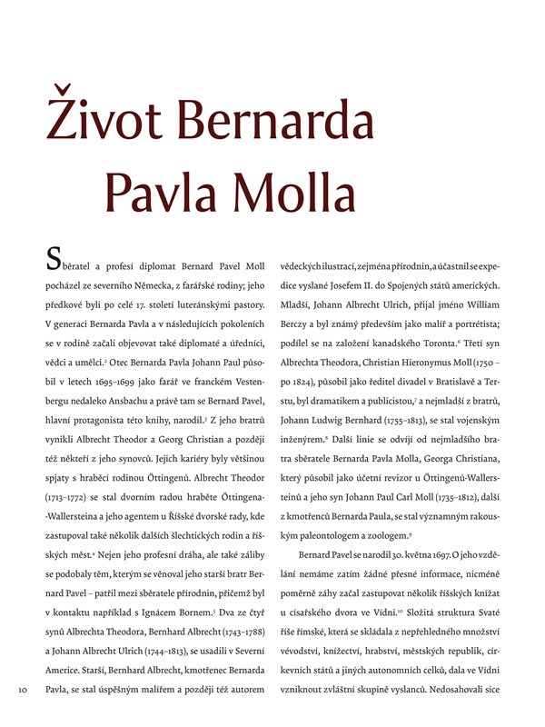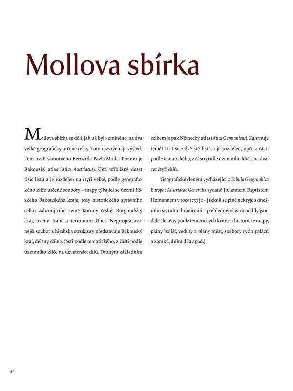 Bernard Pavel Moll. Autoři se věnují jak Mollovu životopisu a společenským kontaktům, osudům sbírky od jejího vzniku ve druhé polovině 18. století až po období, kdy se dostala do Brna, tak uspořádání a obsahu sbírky, která čítá přibližně 8?000 archů map a vedut a je zde prezentována na více než osmdesáti ukázkách.