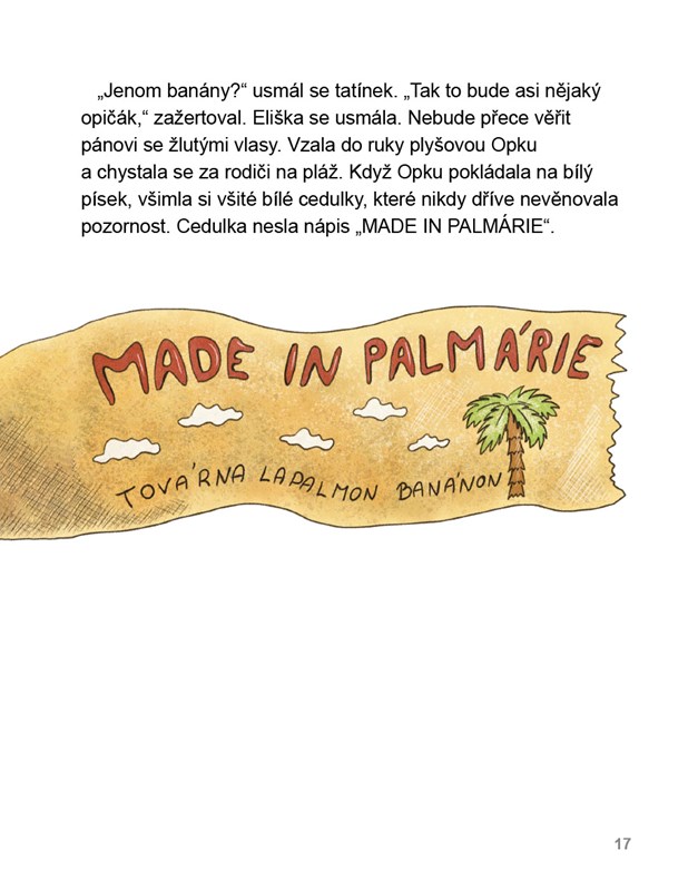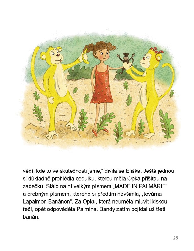 Elišku čeká její první cesta letadlem. Spolu s rodiči se těší na teplo a krásnou pláž, nikdo z nich však ani v nejmenším netuší, že země, do které míří, je kouzelná! V Palmárii si Eliška rychle najde nové kamarády – opičku Palmínu a opičáka Bandyho. Společně vykouzlí v tropech sníh, z mořské hladiny udělají kluziště a postaví sněhuláky z písku.