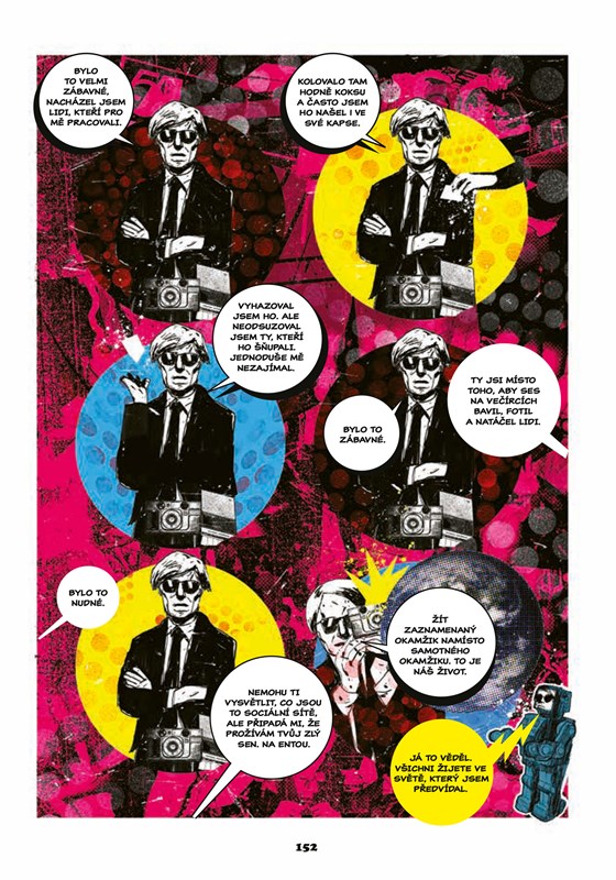 TENTO JEDINEČNĚ ZPRACOVANÝ KOMIKSOVÝ ŽIVOTOPIS VE FORMĚ ROZHOVORU SE SAMOTNÝM KRÁLEM POP ARTU VÁM UMOŽNÍ NAHLÉDNOUT DO JEHO FASCINUJÍCÍHO SVĚTA A PŘENÉST SE DO SPOLEČOSTI NEWYORSKÉ UMĚLECKÉ BOHÉMY 60. A 70. LET.