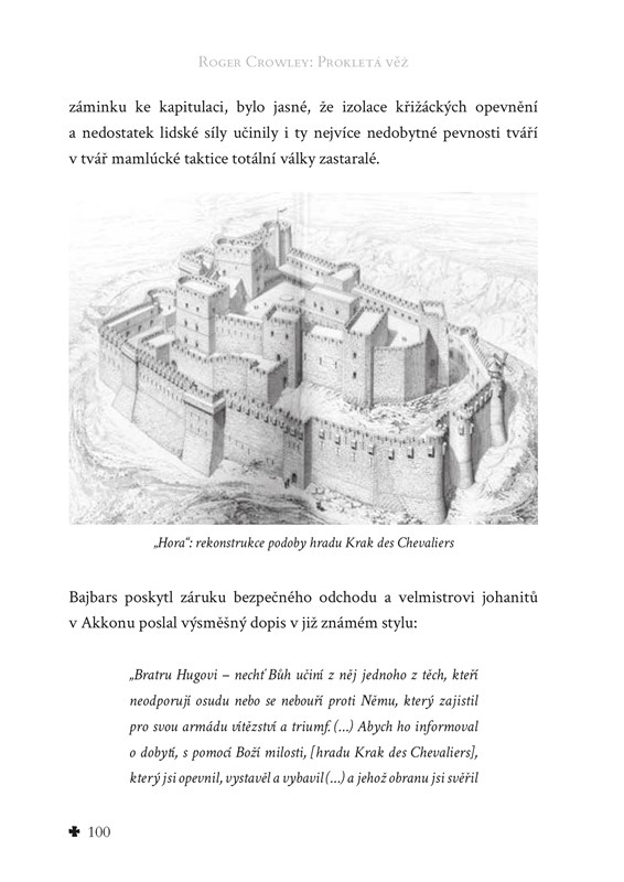 Prokletá věž byla středobodem obléhání. Jako poslední naděje křižácké obrany se stala symbolem pádu starého světa. Crowleyho vyprávění je založeno na detailním výzkumu čerpajícím z málo známých svědectví křesťanských i muslimských pramenů. Výsledkem je čtivá a poctivá zpráva o zlomovém momentu světové historie.