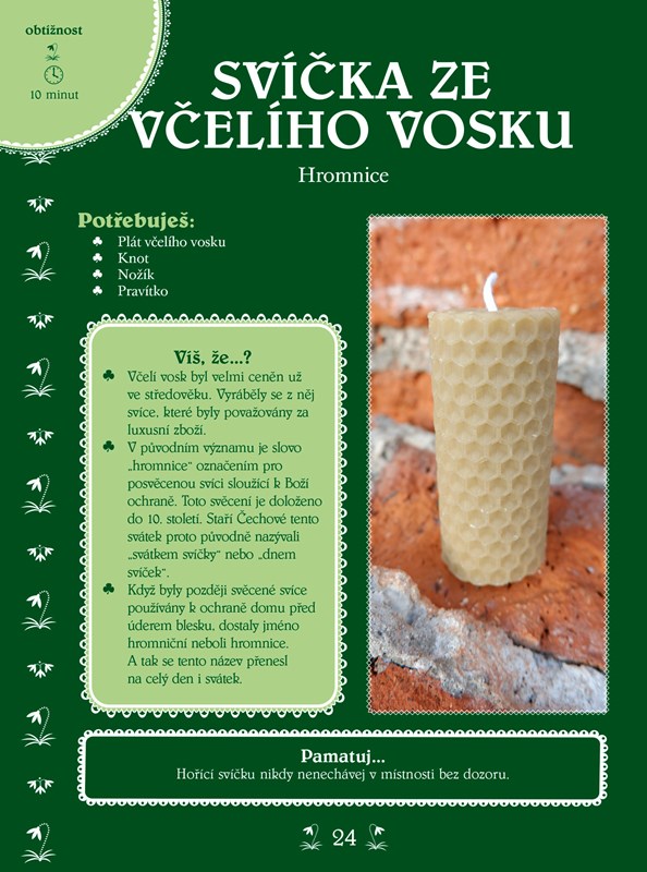 Během předjaří si tak hravě vyrobíte masopustní masky, v období kolem Velikonoc snadno zvládnete pletení pomlázky, po letním slunovratu se pustíte do výroby kukuřičné panenky a o adventu si upečete třípatrovou vánočku.