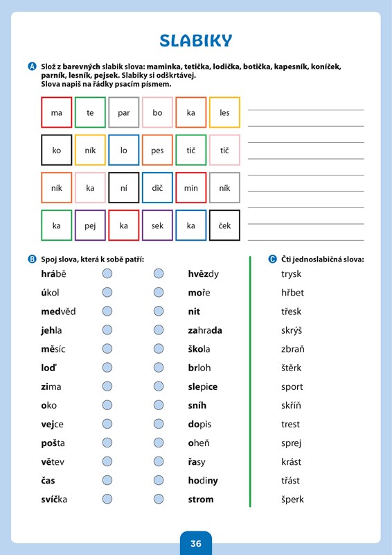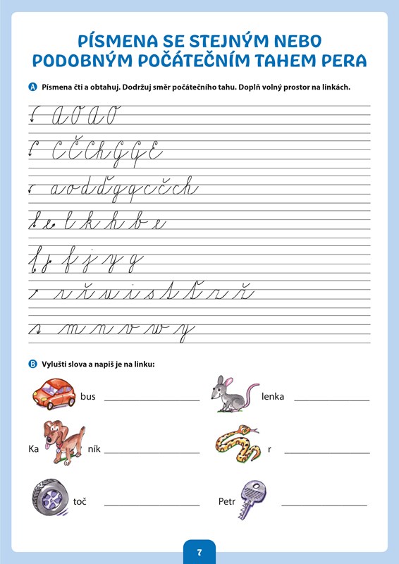 Publikace je určena nejmladším žákům přibližně od 7 let a věnuje se rozvoji poznávacích funkcí, zejména v oblasti psaní a čtení.