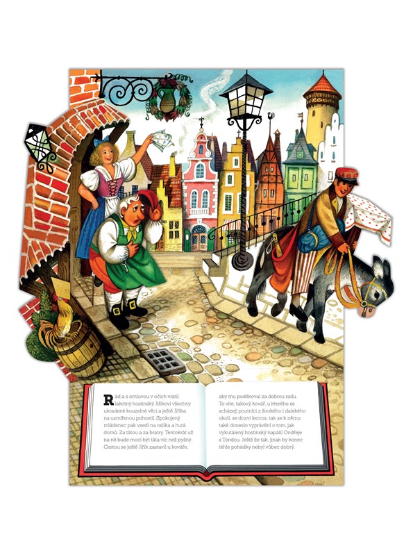 Jestlipak víte, co se stane, když se pochlubíte kouzelnými předměty, které jste si poctivě vysloužili, někomu, kdo je hamižný až hrůza? Že ne? Inu, tak se podívejte do pohádky. Spatříte, jak truhláře Ondřeje a jeho bratra, mlynáře Tondu, připraví nenechavý hostinský o kouzelný stoleček i o zlatonosného oslíka. Naštěstí si Jiřík, nejmladší z bratrů, vyslouží u kováře speciální obušek. Stačí pouze zavolat „obušku, z pytle ven!“ a začnout se dít věci… Ptáte se, jaké? Stačí otevřít nádherně ilustrovanou interaktivní knihu slavného českého výtvarníka Vojtěcha Kubašty a pohádkový příběh vám už všechno povypráví sám.
