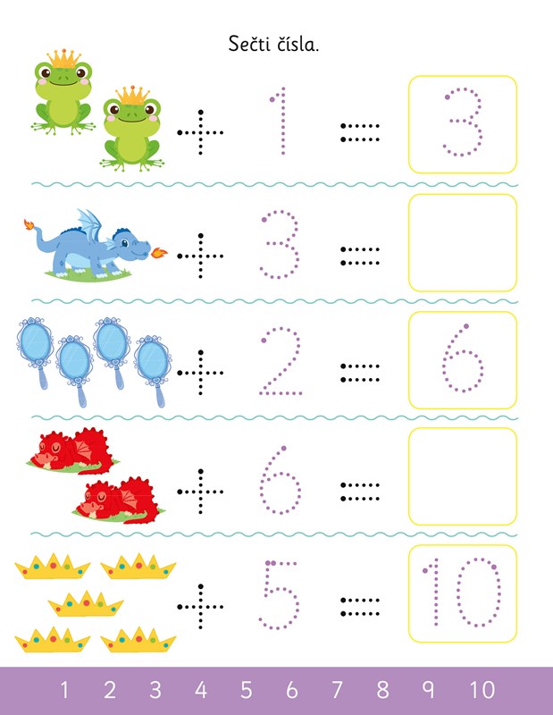 Tato kniha pomáhá malým čtenářům učit se základy písmen a čísel. Při obtahování tečkovaných slov a čar se dětem rozvíjí jemná motorika a vizuálně-motorická koordinace. Sešit obsahuje také zábavné luštění a hry. Nechte své dítě, ať slova opakuje nahlas. Všechny stránky se dají popisovat opakovaně, můžete je snadno setřít hadříkem či ubrouskem.