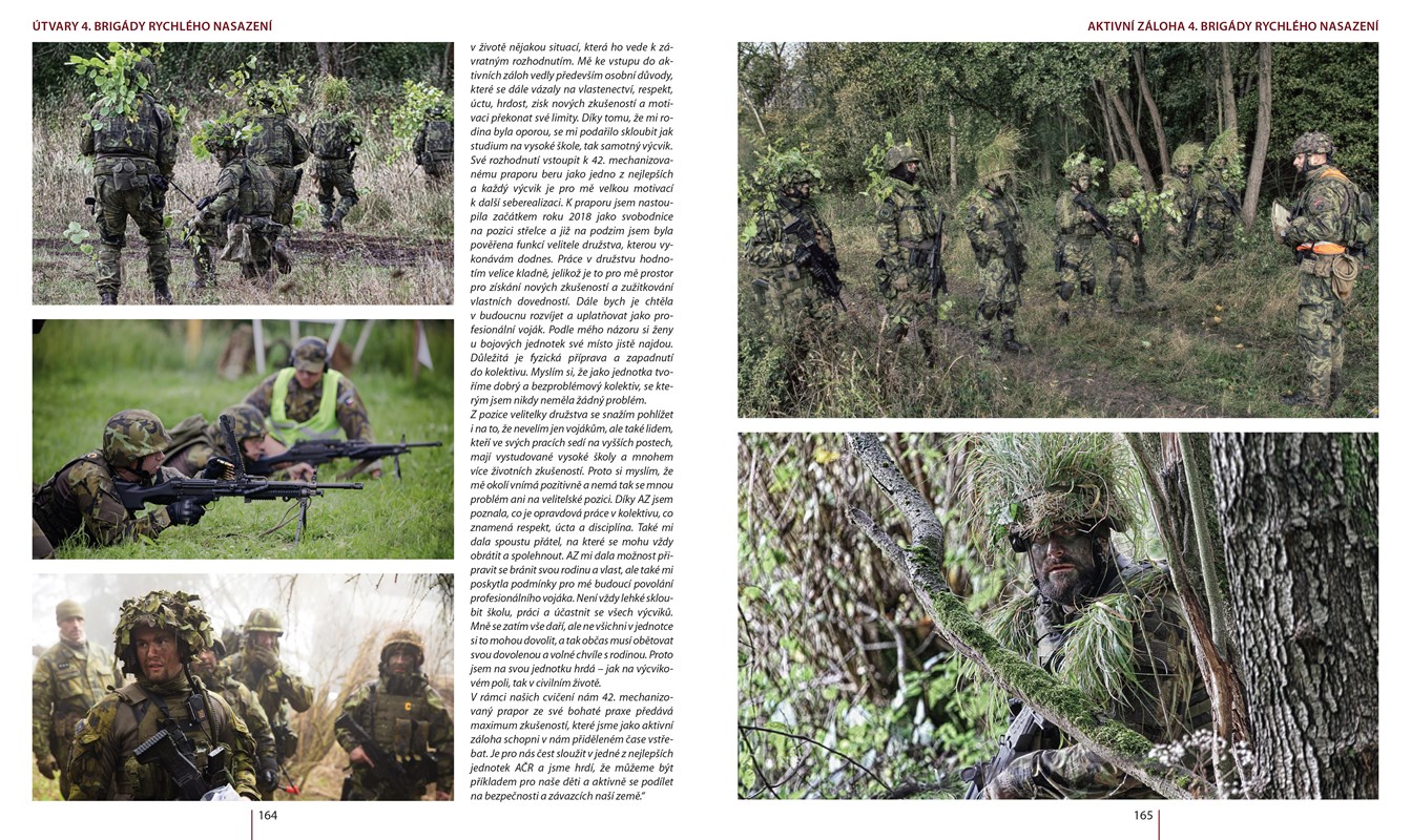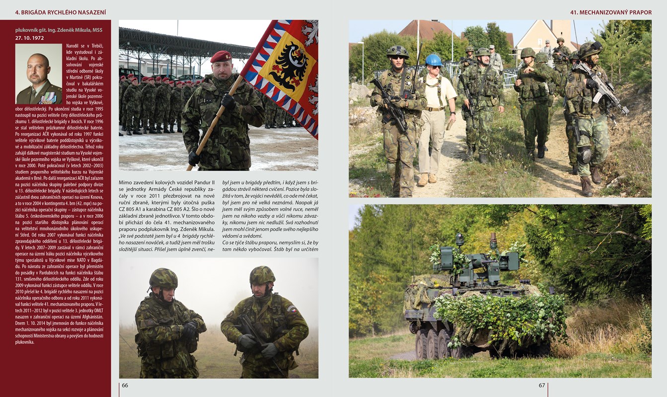 Unikátní dílo o komplikovaném vzniku a vývoji 4. brigády rychlého nasazení a jejích útvarů. Velkoformátová, luxusně zpracovaná kniha s množstvím unikátních a dosud nikde nepublikovaných fotografií Vám představí tento elitní útvar, seznámíte se nejen s její tradicí, strukturou, jejími úkoly, technikou, výzbrojí, ale zejména s lidmi, kteří v této jednotce slouží a sloužili. Přečtěte si autentické výpovědi vojáků i důstojníků, z nichž mnozí dnes tvoří naprostou špičku vedení Armády České republiky. Pozornost je věnována i zaniklým útvarům brigády, aktivním zálohám nebo duchovní službě. Dozvíte se zákulisní informace z více než pětadvacetileté historie jednotky, zajímavosti z jejího nasazení v zahraničních i domácích úkolech a proč je červený baret prestižní záležitostí.