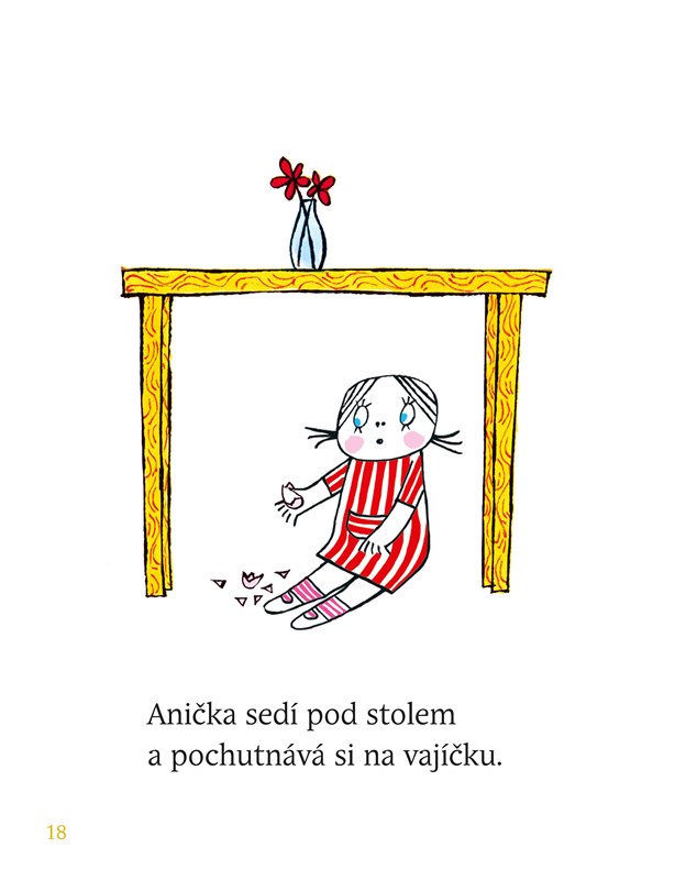 Malá Anička je zpět! Hraje si s míčem, přemisťuje věci a rozbaluje vánoční dárek. Půvabná obrázková knížka v sobě ukrývá tři příběhy z dílny švédských autorů Inger a Lasseho Sandbergových. Jednoduché ilustrace a jazyk si od dob prvního vydání podmanily tisíce českých dětí. Z mnohých se mezitím stali rodiče, kteří nyní mohou milovaná vyprávění z dětství nabídnout i svým potomkům – v novém formátu a moderní grafické úpravě.