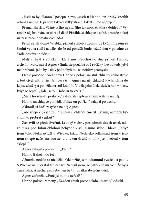 Zimní Hamburk na přelomu let 1946 a 1947. Čtrnáctiletý Hanno Dietz s matkou a mladší sestrou si přivydělávají sběrem kovového šrotu v rozvalinách města. Když v jednom rozbořeném domě narazí na mrtvou ženu a venku objeví zamlklého zbloudilého chlapce, jejich život se obrátí vzhůru nohama. Celá záhada prorůstá až do 90. let, kdy se Anna Meerbaumová rozhodne rozřešit tajemnou minulost své rodiny – a přitom narazí na dosud nevyřešený zločin.