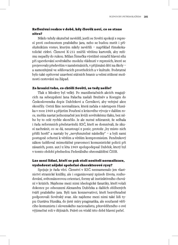 Normalizace si ve společnosti vydobyla pověst přece jen snesitelného, „gulášového“ komunismu, během nějž se před realitou utíkalo na chalupu nebo k deskám Karla Gotta. Ve skutečnosti to však byly roky mimořádně ničivé. Společenská apatie, letargie, snaha příliš nevyčnívat, obava z vlastní tvořivosti, neochota přijmout se svobodou i zodpovědnost, to vše má kořeny nikoliv na šibenicích padesátých let a v jáchymovské věži smrti, ale v režimu, který přivezly sovětské tanky v srpnu 1968.