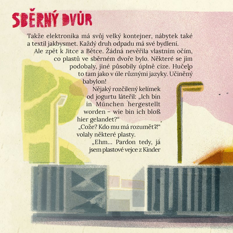 Tato originální a 100% „recy“ kniha pro děti se na problém podívá z druhé strany, tedy z pohledu plastů samotných, a to prostřednictvím dvou sympatických hrdinek: igelitky Jitky a petky Bětky. Dokáže vám, že obě mají své radosti i strasti, a především dobrodružný život!