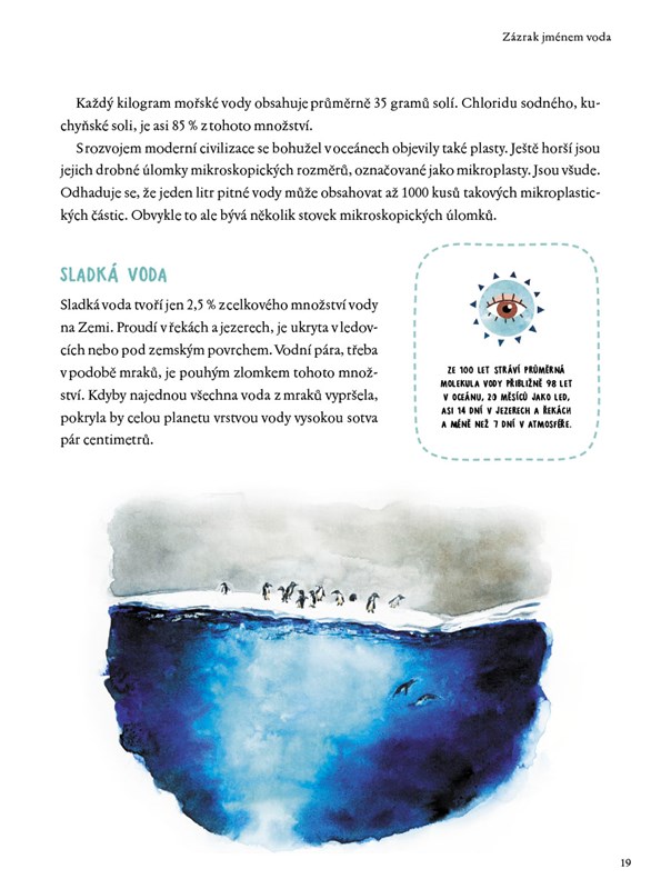 Srozumitelné odpovědi, další zajímavosti a nečekané souvislosti najdete v této krásně ilustrované encyklopedii. Nechybí zábavné pokusy a tipy, jak o vodu pečovat.