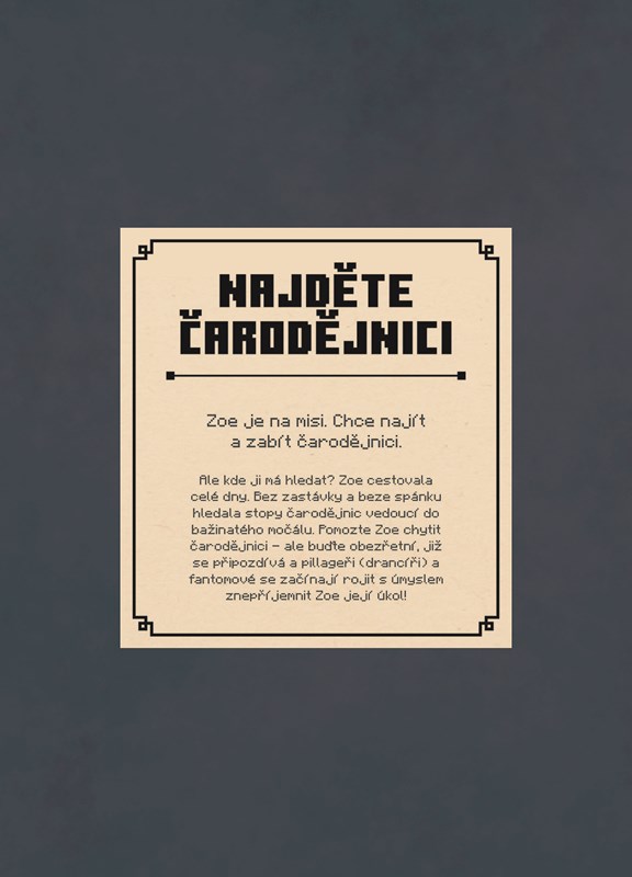 Slyšeli jste to ZAÚPĚNÍ? Tak to byla ohavná zombie někde blízko, ale kde? Cestujte mezi dimenzemi s našimi chaotickými průzkumníky a hledejte s nimi zombie a další moby na neuvěřitelných místech světa Minecraftu.