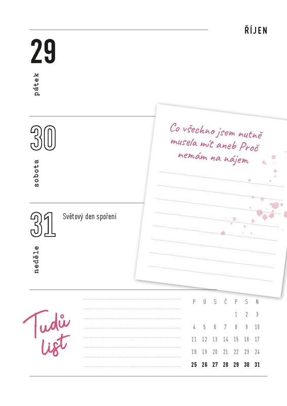 Obrňte se proti věčně pozitivně naladěným prudičům a dejte si sladkou roční pauzu od dokonalého a ambiciózního světa, kde všichni věčně vědí všechno líp než vy! Veronika Arichteva, Martina Pártlová a Nikol Štíbrová aneb 3v1 vás provedou tvrdou realitou roku 2021 pod hesly – Když nemůžeš, přiber a Jdi s každým, kdo tě má rád! Tak s tímhle stylovým diářem, doplněným praktickou gumičkou, prožijete ten nejpohodovější rok za celý svůj život.