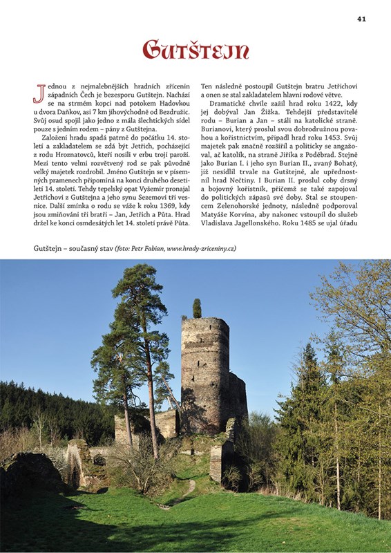 Hrady, hrádky a tvrze v krajině spolehlivě upoutají naši pozornost. Patříte-li mezi obdivovatele majestátnosti kamenných svědků minulých časů a nespokojíte-li se s tím, co vám o nich sdělí standardní turistický průvodce, pak držíte v rukou tu správnou knihu. Nesnaží se být vyčerpávajícím odborným pojednáním, přesto chce širší veřejnosti poodhalit tajemství středověké architektury v západočeském regionu a nezůstat jen na povrchu. Najdete v ní kapitoly věnované známým cílům turistických tras – hradům, jako je Rabí, Loket, Velhartice aj. Ale současně se seznámíte i s místy, jejichž krása zůstává i dnes uchráněna před nájezdy dychtivých turistů – za všechny jmenujme třeba Starý Rybník, Volfštejn či tvrz Zavlekov.