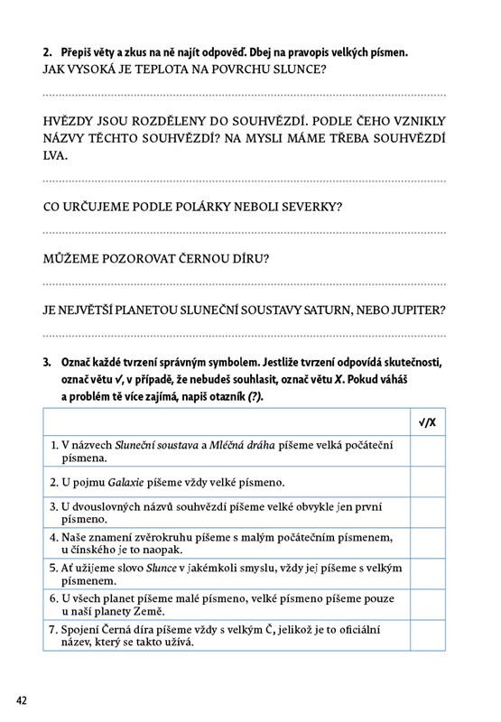 Látka je řazena do kapitol podle jednotlivých oblastí, ve kterých se lze setkat s velkými písmeny. Děti mohou pracovat samostatně podle svého tempa a potřeb. Nechybí shrnující opakování a klíč správných řešení.
