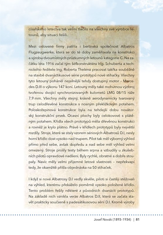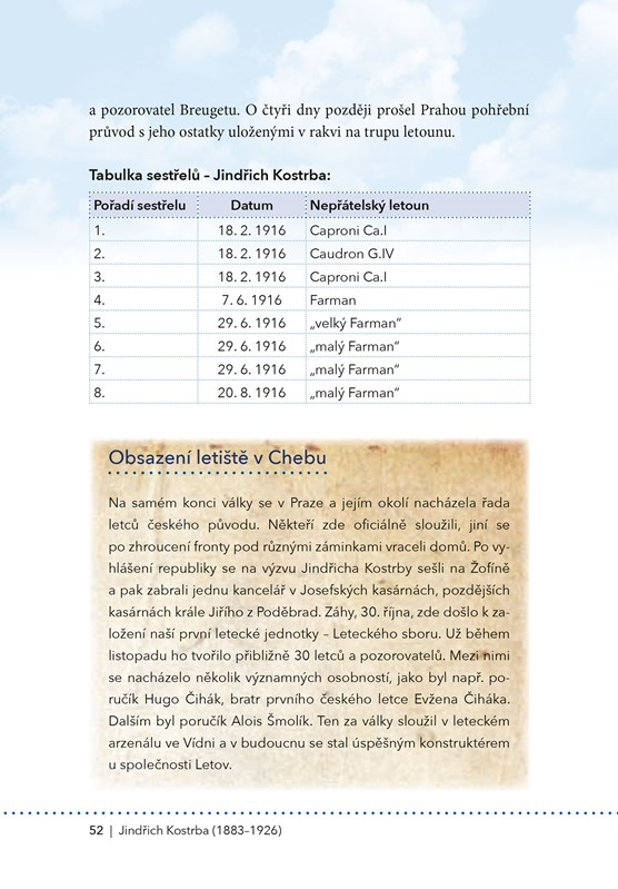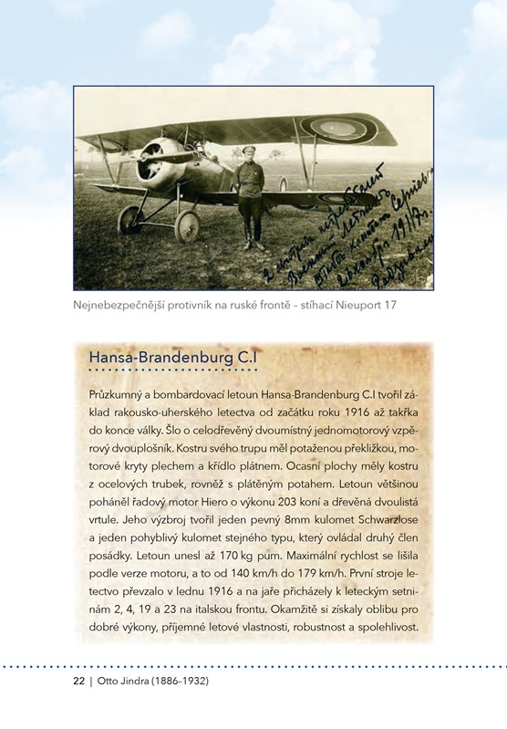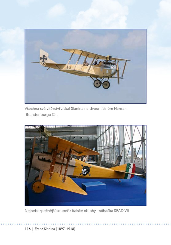 Během první světové války se zrodil pojem „stíhací eso“. Byl jím označován letec, který dokázal sestřelit pět a více nepřátelských letadel. Šlo sice o neoficiální, zato však velmi ceněný titul – snad každý pilot se jím toužil stát. Do konce Velké války se mezi esa zařadili celkem čtyři čeští piloti létající v řadách rakousko-uherského letectva. Konkrétně se jednalo o Ottu Jindru, Jindřicha Kostrbu, Augustina Nováka a Josefa Nováka; za Čecha bývá označován také František, či spíše Franz, Slanina. Každý z těchto mužů byl velice barvitou osobností. A právě těmto úspěšným letcům je věnována kniha, kterou nyní držíte v rukách. Norbert a Marek Brzkovští, již zkušení autoři na poli dějin válečného letectva, se svým novým dílem pokusili vzdát hold těm, kteří byli dlouhá desetiletí opomíjeni – jen proto, že bojovali za „špatnou“ stranu. I těmto skvělým letcům však patří naše uznání.