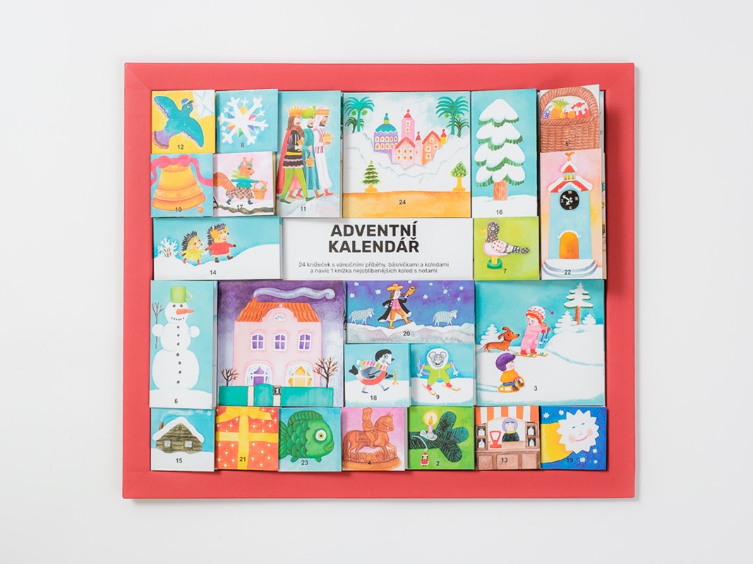 Kouzelný adventní kalendář s vánočními příběhy, básničkami a koledami a navíc jedna knížka. Na každý den místo čokolády jedno leporelo s vánoční tematikou.
