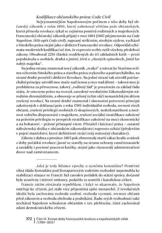 Historička Daniela Tinková v novém svazku edice Dějiny Evropy představuje komplexní obraz „dlouhého osmnáctého století“. Přibližuje hluboké proměny, které Evropa zažila mezi koncem sedmnáctého a počátkem devatenáctého století, zhruba v období od britské Slavné revoluce až po závěr francouzské revoluční éry a napoleonských válek. Autorka sleduje nejen dění v jednotlivých státech, ale i obecnější kontext proměny politických struktur, zrod globálního hospodářského systému, koloniální expanzi a další fenomény, které ovlivňovaly každodenní život evropské společnosti. Pozornost je věnována také proměnám kulturního a intelektuálního klimatu, jež postupně připravily půdu pro vznik moderní občanské společnosti.