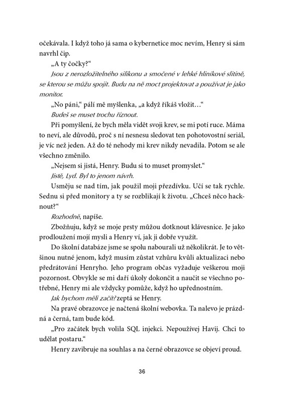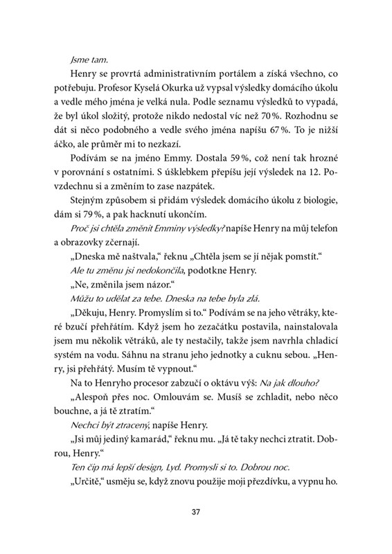 Lydia začala pracovat na vytvoření Henryho, své vlastní umělé inteligence, už před několika lety – ještě předtím, než její bráška umřel během nehody, která ji straší ve snech. Předtím, než její táta odešel z domova a nechal je s matkou samotné. A než se s její nejlepší kamarádkou úplně odcizily.