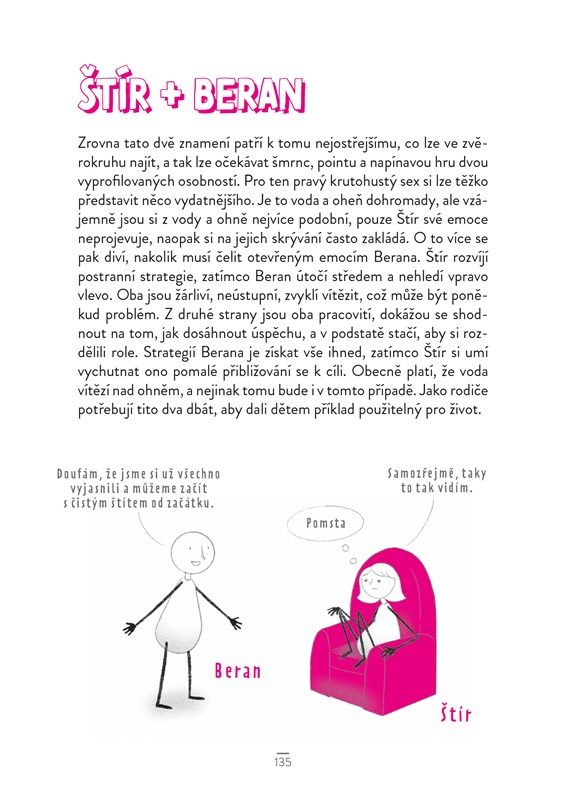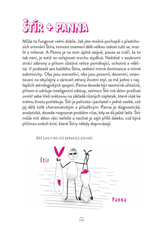 Renomovaný astrolog Antonín Baudyš napsal ke každému páru hvězdných znamení komentář, který jeho kolegyně Michaela Gibalová doplnila vtipem, často na hranici černého humoru. Nevšední knížka tak obsahuje 144 kreslených point.