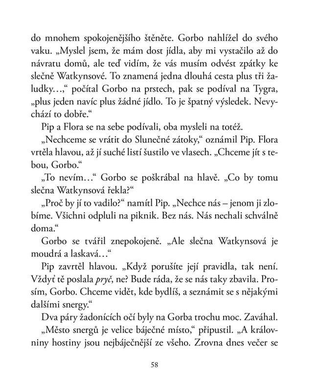 Jejich nový kamarád snerg Gorbo – veselý chlapík malého vzrůstu, zato velkého srdce – jim pomůže s hledáním cesty domů. Pokud si děti vzpomenou, kde to vlastně je, a Gorbo, kudy se tam jde, možná se jim to i podaří…