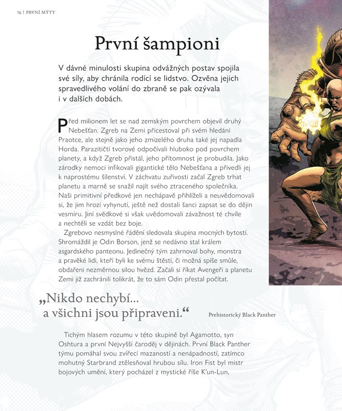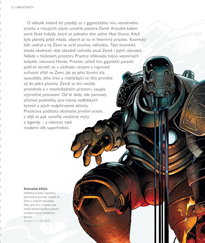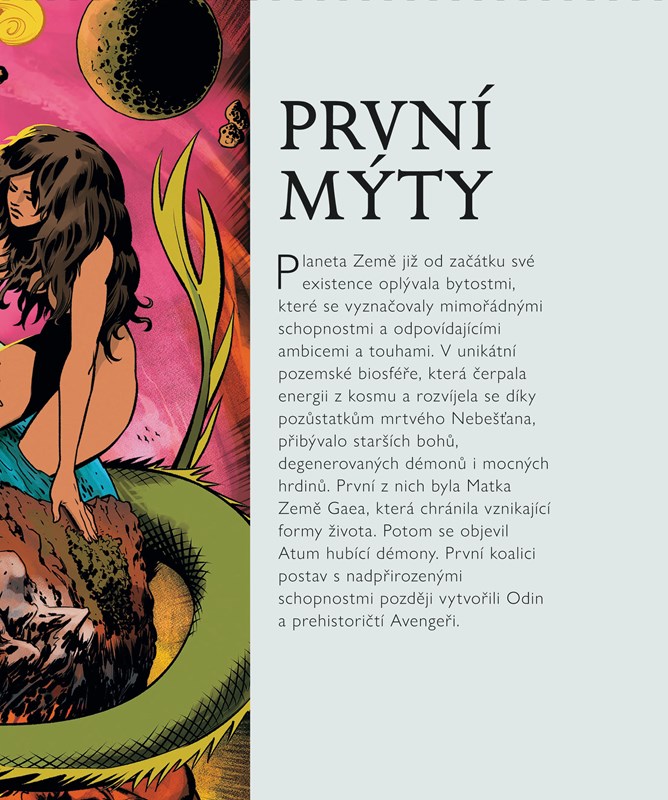 Co se skrývá v minulosti nejsilnějších superbytostí ze světa Marvelu? Vraťte se v čase až k úsvitu věků a staňte se svědky zrození rasy Nebešťanů. Prozkoumejte panteony Thora a Asgarďanů i jejich rivalů z Olympie. Poznejte mystické začátky Nejvyššího mága Doktora Strange. Procházejte se spolu s bohy Wakandy a legendárními Black Panthery. V této fantastické publikaci najdete všechny velkolepé ságy, které píšou příběh spletitého marvelovského vesmíru!