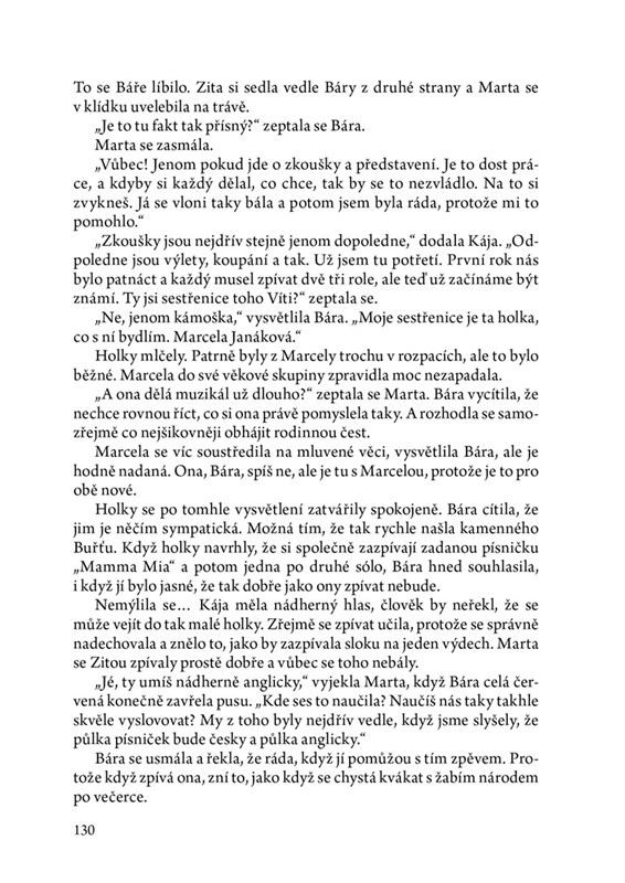 Báře je čtrnáct a to jí stačí. Další problémy nepotřebuje. Po roce v Americe se těší na poklidné léto s rodinou, teta Sylva a sestřenice Marcela však mají jinou představu. Marcela touží jet na muzikálový tábor a Bára pojede s ní. To je přece super, ne?