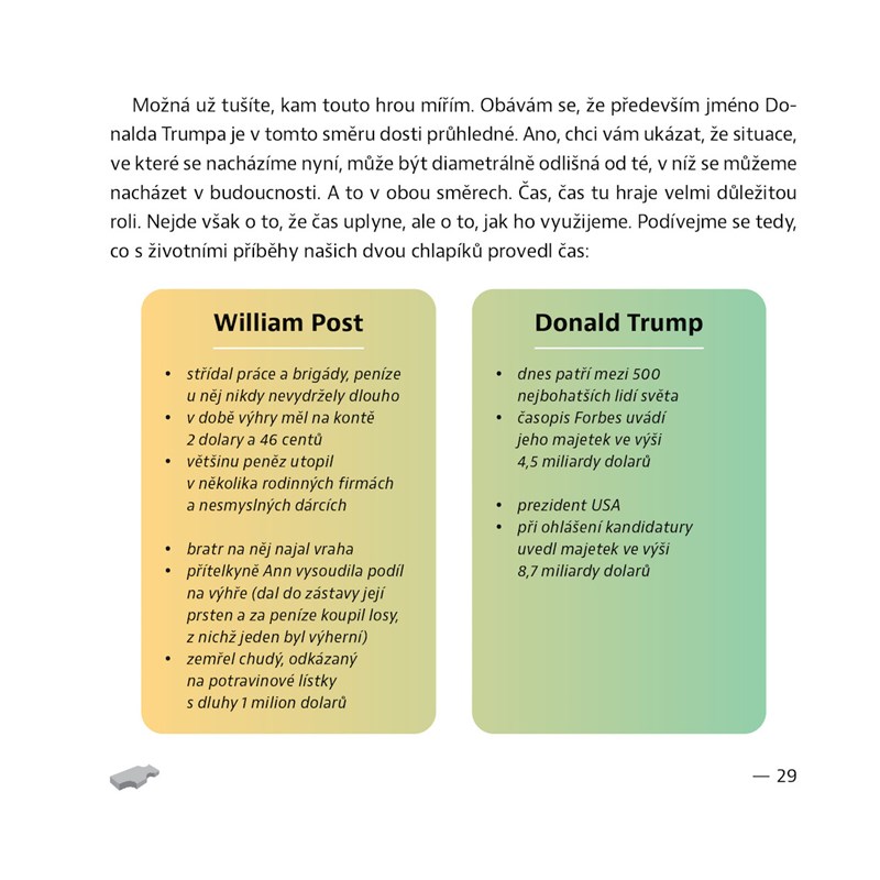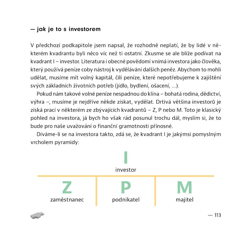 Peníze jsou až na druhém místě, na prvním je naše spokojenost, jenže té se bez peněz těžko dosahuje. Jak najít cestu z tohoto bludného kruhu a co je při tom dobré vědět? Povídání podnikatele, který zažil finanční úspěchy i spoustu malérů, o tom, jak se poučit z vlastních chyb a jak najít nový směr. A k tomu spousta otázek, námětů k přemýšlení a inspirace na téma finanční gramotnosti.