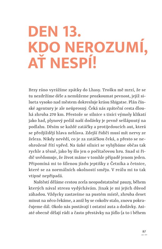 Katka Stibalová projela s batohem na zádech řadu asijských zemí a nevynechala ani komunistickou Čínu. Vzdor všemu, co o ní věděla, ji zatoužila vidět na vlastní oči. Velkou zeď, posvátná pohoří, soutěsky i Tibet. Žádné velké dobrodružství ani politické soudy, chtěla jen pohodu a krásu všude kolem.