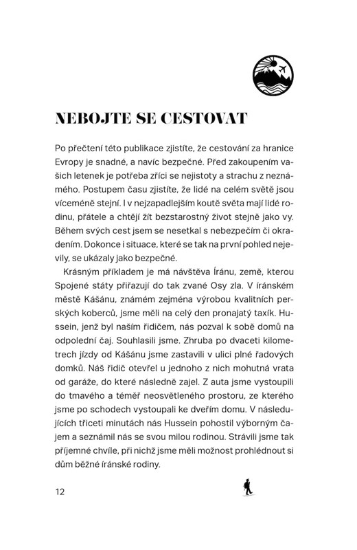 Kniha přináší kompletní instrukce, jak si naplánovat dovolenou bez cestovky a jak ji zrealizovat. Kapitoly jsou doplněny zážitky z cest, rozšířenými o konkrétní tipy a triky. Navíc v knížce najdete cestovní itineráře do Japonska, Izraele, Vietnamu a Íránu a také dvanáct dobrodružných příběhů, které se skutečně staly.