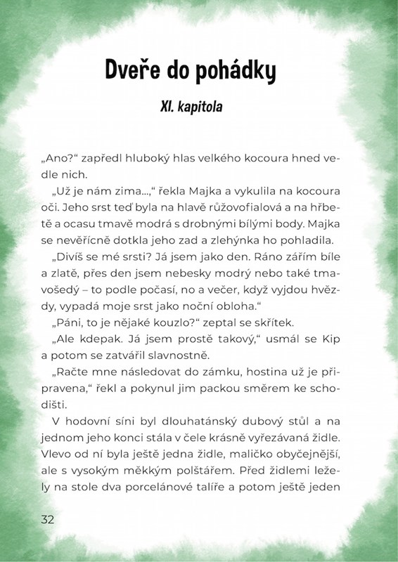 Majku a skřítka svede dohromady láska k pohádkám. Společná cesta zemí pohádek je ale překvapí. Myslíte si, že tu potkají spoustu krásných princezen a strašlivých draků, hloupých Honzů nebo šlechetných princů? Kdepak! Jak je to vlastně s krajinou za dveřmi do pohádky, to se dozvíte v úvodním příběhu. Další povídání už je jen a jen na Majce a skřítkovi. A na motýlech…