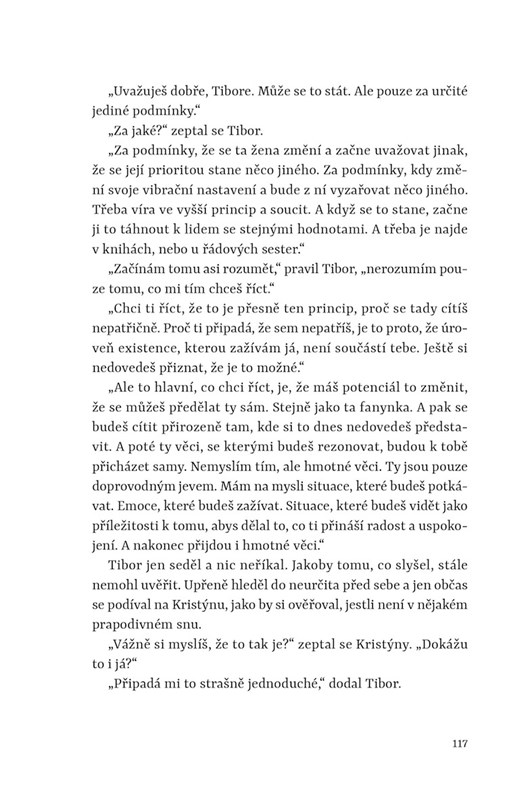 Tibor je na dně. Série katastrofálních rozhodnutí ho dovede až do bodu, kdy se rozhodne, že svůj život ukončí. Shodou okolností mu čin překazí Kristýna, která je jeho přesným opakem. Začne mu vysvětlovat, proč se mu nedaří. Ukáže mu principy sebehodnoty, víry a odpovědnosti za každý krok, který učiní. Pomůže mu najít vlastní potenciál a naučí ho, jak jej rozvíjet. Cesta je to mnohdy bolestná, ale Tibor konečně začne posouvat hranice svých představ o tom, co je v životě možné.