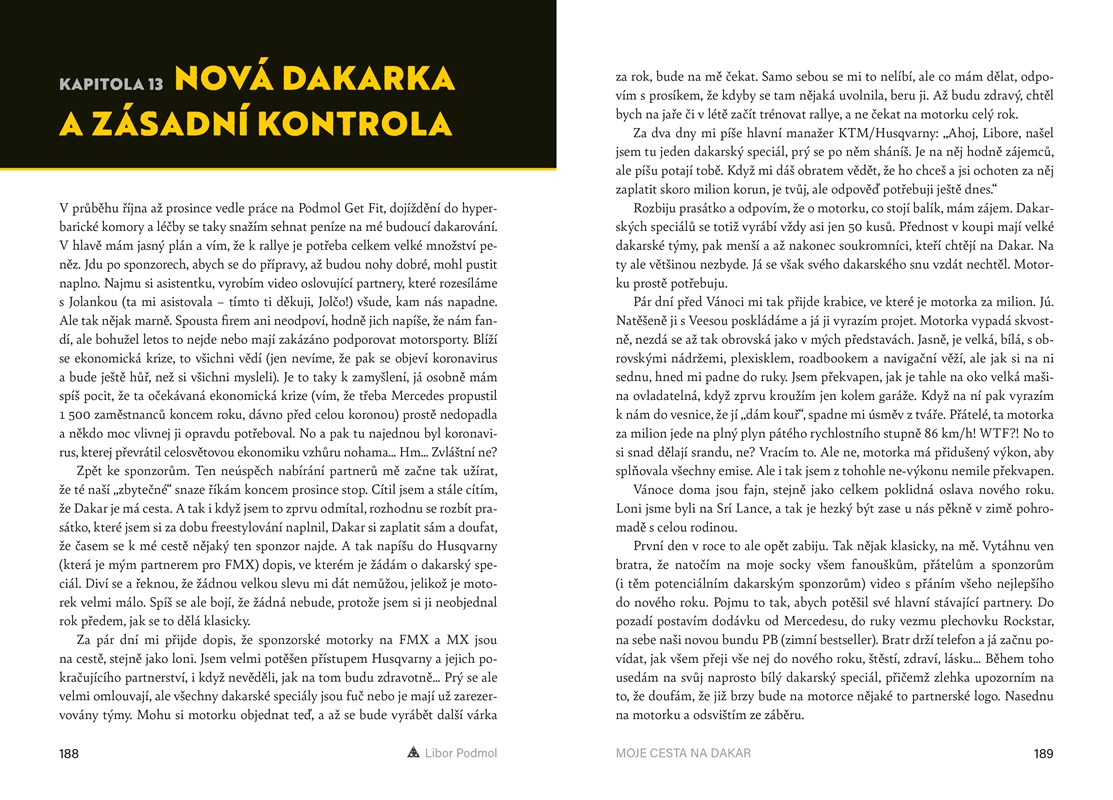 Nejvýraznější osobnost českého motorsportu posledních let. Mistr světa. Vítěz americké olympiády extrémních sportů X-Games. Existuje nějaká meta, kterou Libor Podmol zatím nepřekonal? Ano: Rallye Dakar. S energií sobě vlastní se pustil do přípravy, ale pak si při závodech v Mnichově zlomil obě nohy. Sledujte jeho velký návrat po měsících na invalidním vozíku, vydejte se s ním pro státní vyznamenání a prožijte drsnou cestu za nejtěžším závodem planety!