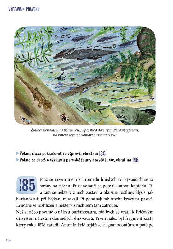 Náš gamebook ti na tyto otázky nejen odpoví, ale ještě tě přenese o miliony let nazpátek a provede tě jednotlivými obdobími. Seznámíš se se slavnými badateli a převratnými objevy, které se zapsaly do dějin české paleontologie.