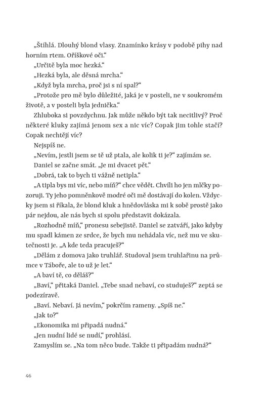 Napadá tě lepší plán, jak strávit páteční večer, než tak, že přijmeš pozvání od svého nejlepšího kamaráda Sama a jdete se v doprovodu další nejlepší kamarádky Denisy trochu pobavit a popít? Na party se seznámíš s Danielem – klukem, do jehož pomněnkově modrých očí se bezhlavě zamiluješ. A to nemluvím o jeho úsměvu. Měla bys ho nechat na pokoji, nebavit se s ním, nevšímat si ho, ale o to víc tě přitahuje. Co se skrývá v klukovi, který pro tebe není vhodný? A proč vlastně?