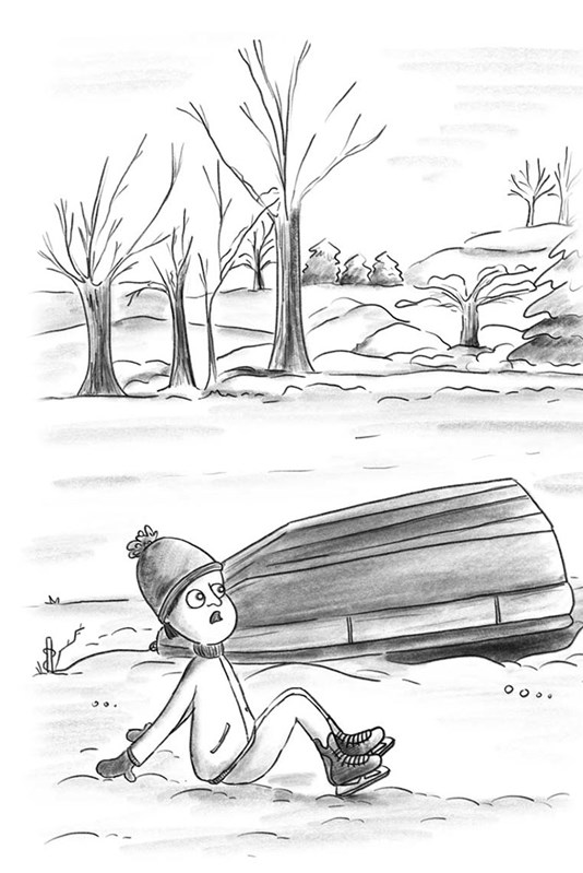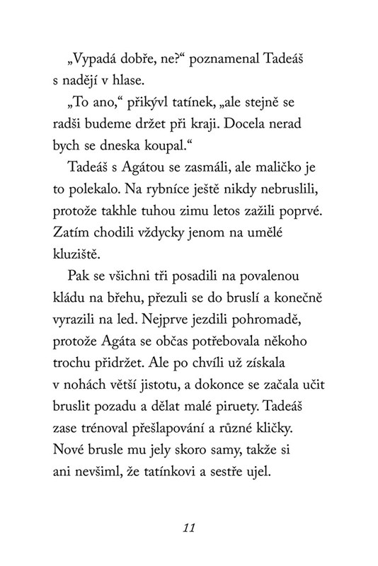 Venku mrzne, až praští, a tak sourozenci Tadeáš s Agátou vyrážejí v doprovodu tatínka bruslit na rybník. Když Tadeáš usedne na otočenou pramičku, aby si odpočinul, zaslechne podivné šramocení. S tátovou pomocí loďku obrátí a zjistí, že je pod ní úplně promrzlá volavka. Je velmi zesláblá a vyhladovělá. Ani se nebrání tomu, když ji opatrně začnou balit do deky, aby ji dopravili do záchranné stanice. Dorazí však včas? Dokážou podchlazeného ptáka ještě zachránit?