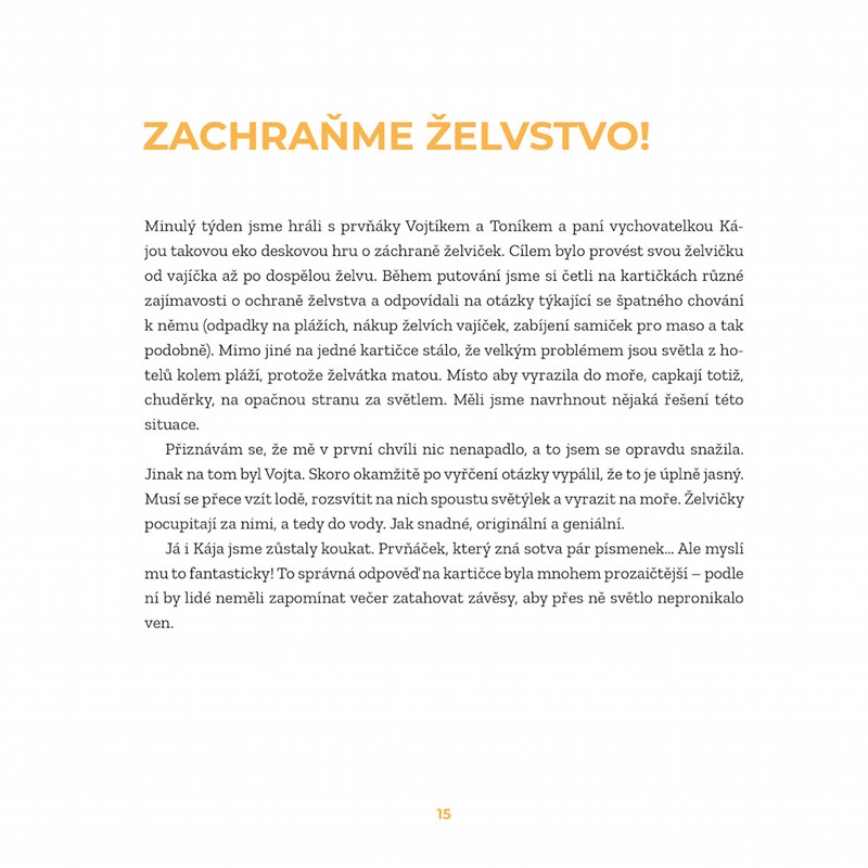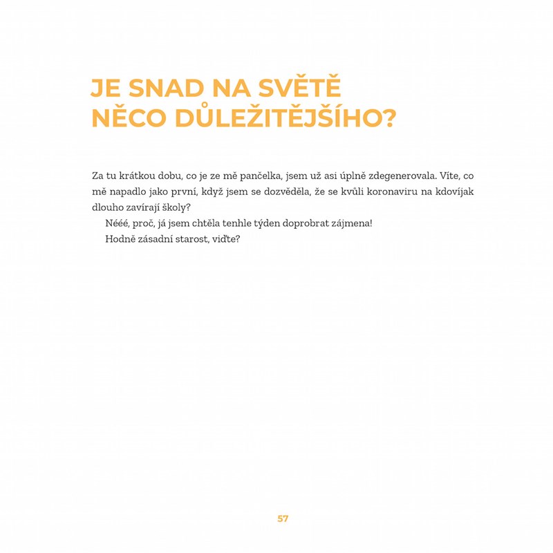Zlom v jejím životě nastal, když zjistila, že nestačí vlastnímu pracovnímu tempu. Zahlcená povinnostmi se zapomněla radovat z přítomného okamžiku. Několikaměsíční pracovní neschopnost jí ale umožnila srovnat si priority. Začala si všímat, kolik zajímavých věcí se kolem ní děje. A právě o nich v knize píše. O drobných radostech a zážitcích vtipných, smutných i tragikomických. Kromě prožitků z osobního života se autorka zaměřuje na témata spojená s dětmi se zdravotním a sociálním znevýhodněním. Ta se snaží zpracovat s lehkostí a humorem, přesto ale čtenáři přináší i podnět k zamyšlení.