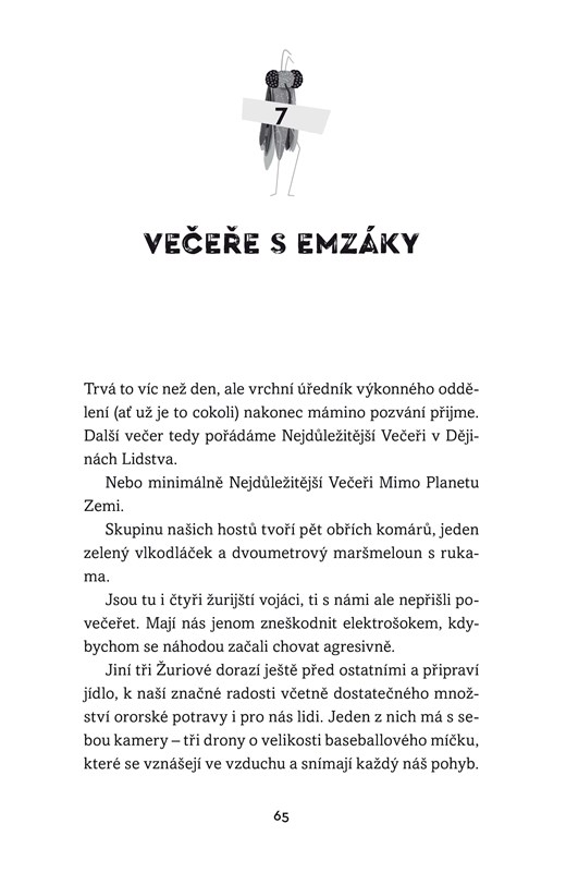 Být z jiné planety (a taky skoro poslední člověk ve vesmíru, na kterém závisí přežití zbytku lidstva) není žádná sranda. Anebo že by přece? Stačí jen přesvědčit obyvatele cizí planety, na které je zakázáno vyvolávat jakékoli emoce včetně smíchu, že lidé jsou naprosto mírumilovní, neškodní a užiteční tvorové a že si zaslouží dostat ještě šanci. I když si svoji vlastní planetu zničili. Přesně tohle dostanou za úkol Lani s rodinou. A nemají na to úplně moc času: týden. Proti nim stojí odhodlaní obyvatelé cizí planety, kteří jenom VYPADAJÍ jako komáři. A rozhodně se nehodlají smát. Ani zvednout koutek. To bude zábava!
