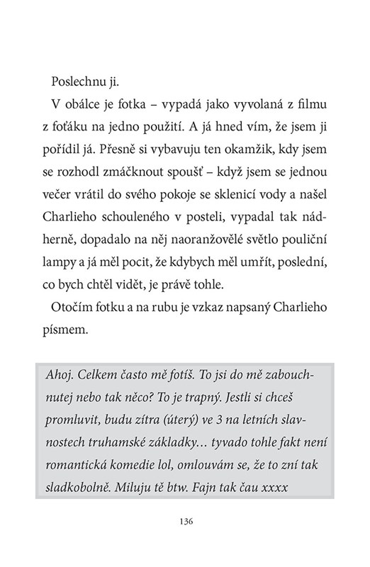 Všichni ví, že Nick a Charlie jsou dokonalý pár – jsou nerozdělitelní. Ale teď Nick odchází na vysokou školu a Charlie zůstane na střední sám. Všichni se ptají, jestli zůstávají spolu, ale co je to za hloupou otázku?! Vždyť tohle je Nick a Charlie, proboha!