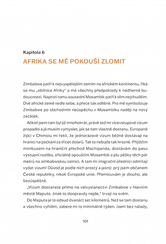 Život jednoho obyčejného mladíka od základu změní nabídka pracovní cesty do Mosambiku. Ze stereotypního způsobu života se na horké africké půdě stává dobrodružství. Každý den je jiný a plný mimořádných zážitků. Jenže po třech letech práce a podnikání přichází další dramatická změna – kvůli politickému převratu nechává autor v Africe úplně všechno včetně snoubenky a vrací se domů. V Česku začíná nová životní etapa, ale i v té se dějí neuvěřitelné věci… Autobiografický cestopisný román o situacích, které život přináší, když to nejmíň čekáte. Ale i o snech, které se mohou změnit v realitu.