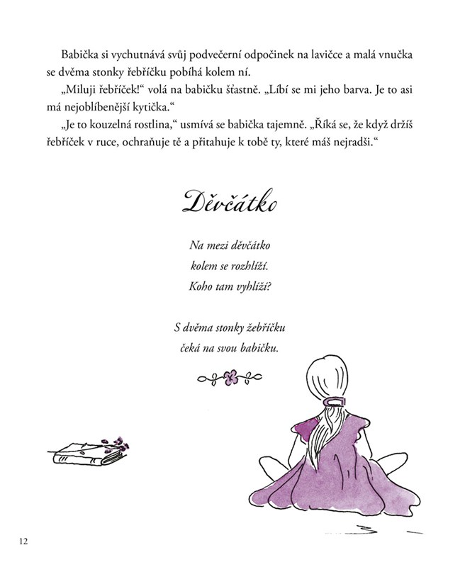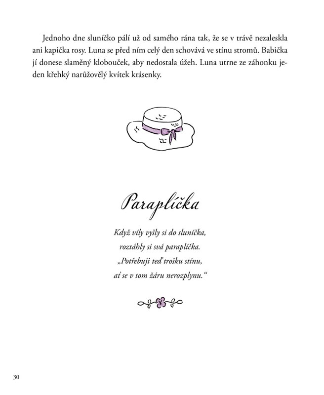 Luna má babičku jako z pohádky. Má krásné stříbrné vlasy a voní po bylinkách. Celé léto je totiž spolu sbírají a suší a babička jí o nich dokáže krásně vyprávět. Vymýšlí pro ni příběhy o květinových vílách, které Luna moc ráda poslouchá. Také miluje obrázky, které z nasbíraných květů, lístků či stonků společně vytvářejí.