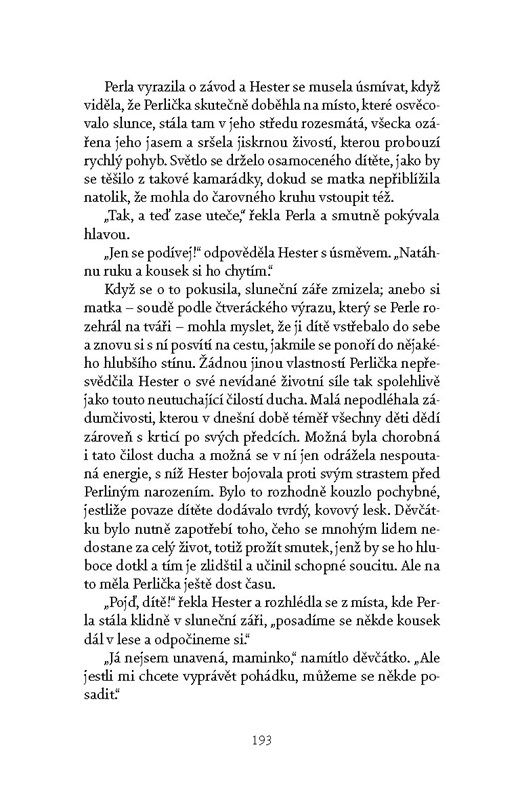 Klasický román americké literatury vypráví o ženě, která se prohřešila proti zákonům morálky tím, že odmítla prozradit otce svého nemanželského dítěte. Poutavý příběh o vině a trestu, diktovaný úzkoprsou puritánskou morálkou, je poznamenán temným ovzduším hrůzy, patosu a lítosti. Hrdinka příběhu Hester Prynneová je jedinou optimistickou postavou příběhu, která silou vůle a touhou po dobru odolává tíživému prostředí puritánského Bostonu. Hořký a krutý příběh je naplněn vírou v lidskou soudnost a statečnost, která jej přibližuje i dnešnímu čtenáři.