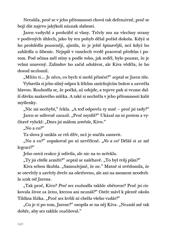 Kiva má strach z nejisté budoucnosti. Spánek jí ruší i epidemie, která se šíří věznicí, a také Jaren - nový vězeň, jehož přítomnost je pro ni důležitější, než si dokáže přiznat…